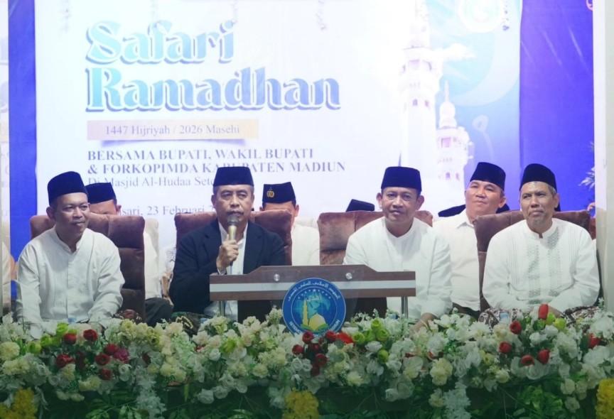 Sebelum acara berlangsung, Bupati dan Wakil Bupati ikut melaksanakan shalat tarawih berjamaah bersama masyarakat. Dalam Safari Ramadhan, Bupati Madiun menyampaikan apresiasi atas terjalinnya silaturahmi antara pemerintah, ulama, dan masyarakat. Bupati menilai kebersamaan tersebut membawa keberkahan bagi Kabupaten Madiun.
