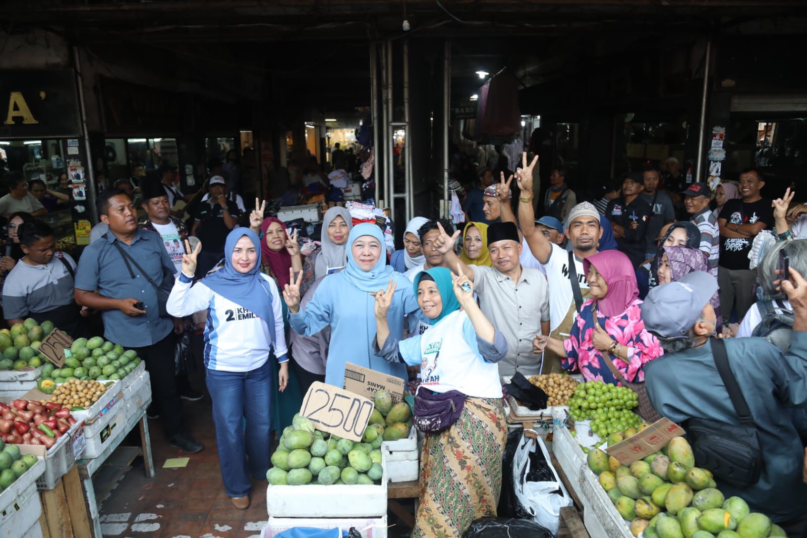 Warga masyarakat di Pasar Besar Malang menyambut antusias kedatangan Khofifah Indar Parawansa, Rabu (6/11/2024). Mereka dengan penuh semangat menyampaikan dukungan dan doa agar calon gubernur Jatim nomor urut 2 tersebut menang dan kembali memimpin.