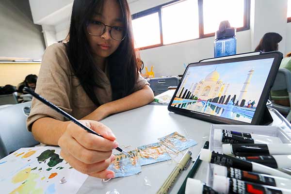 Menurut Kepala Program Studi Desain Komunikasi Visual (DKV) Ubaya, Hedi Amelia Bella Cintya, M.Ds., menjelaskan mencoba berkreasi lukis pada media berbeda, seperti kantong teh bekas, serta memberikan suasana baru saat pembelajaran di kelas mata kuliah Colored Drawing.