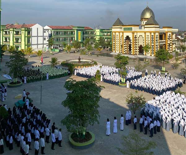 Ribuan santri Pondok Pesantren (Ponpes) Modern Al Fatimah Bojonegoro menggelar Doa Bersama untuk mendoakan keselamatan dan kedamaian Bangsa Indonesia, Senin (1/9). Dalam kesempatan tersebut, para santri juga mendoakan almarhum Affan Kurniawan, pengemudi ojek online yang meninggal dunia saat mengikuti aksi demonstrasi beberapa hari lalu.