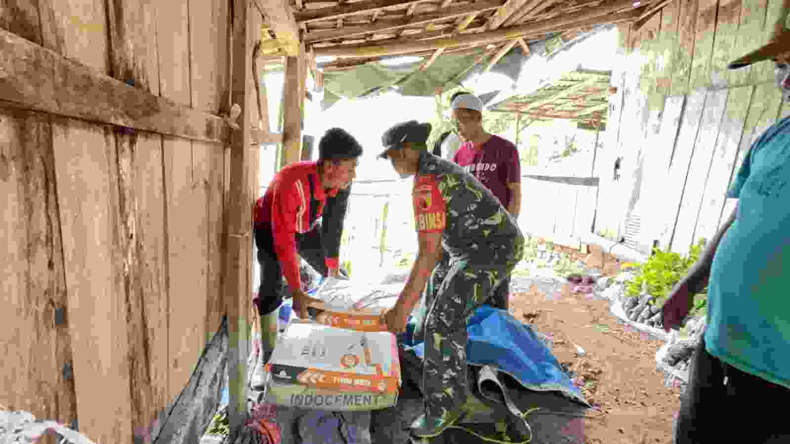 Personel Satgas Ke-127 TMMD bersama rakyat mengangkut kebutuhan sarana pendukung pembangunan fisik, Rabu (28/2).