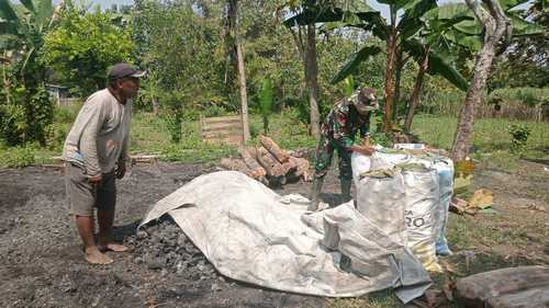 Satgas TMMD Ke-125 di Jombang Kunjungi Usaha Pembuatan Arang Kayu
