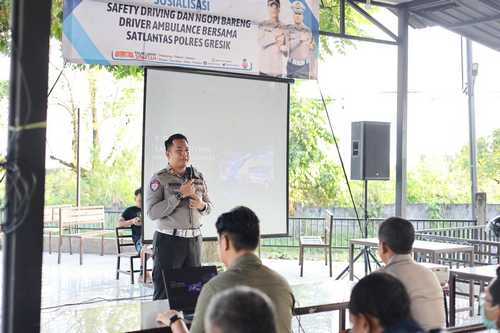Satlantas Polres Gresik Sosialisasi Safety Driving Sambil Ngopi Bareng Driver Ambulans