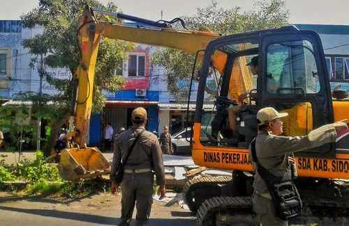 Kepala Satpol PP Kabupaten Sidoarjo, Drs Yany Setyawan mengatakan, pembongkaran malah dilakukan secara mandiri oleh pedagang sekitar 1 bulan yang lalu. Total ada 22 Bangunan liar, yang masih belum dibongkar ada 9 bangunan.