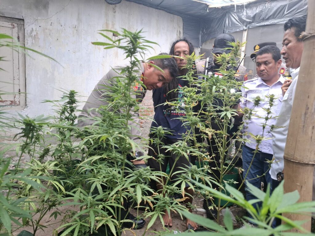 Sebanyak 110 batang tanaman Ganja disita petugas dan polisi mengamankan pria berinisial R (43), warga Surabaya yang merupakan tersangka pemilik tanaman Ganja.