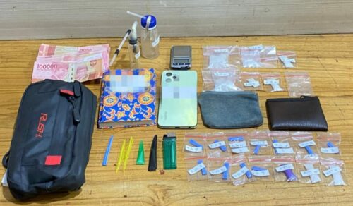 “Dari tersangka MY, kami menemukan duapuluh paket sabu seberat 25,28 gram yang disimpan di dalam dompet dan tas selempang. Sementara dari tangan DY, ditemukan delapan paket sabu seberat 2,6 gram. Jika ditotal secara keseluruhan, ada 27,88 gram sabu yang berhasil kami amankan sebelum sempat beredar luas ke masyarakat,” ujar Iptu Tatang, Sabtu (21/2).