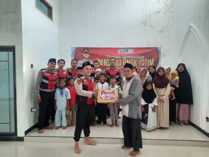 Kasat Samapta Polres Situbondo, Iptu Rachman Fadli Kurniawan saat memimpin program Pasabber dengan anak yatim, kemarin.