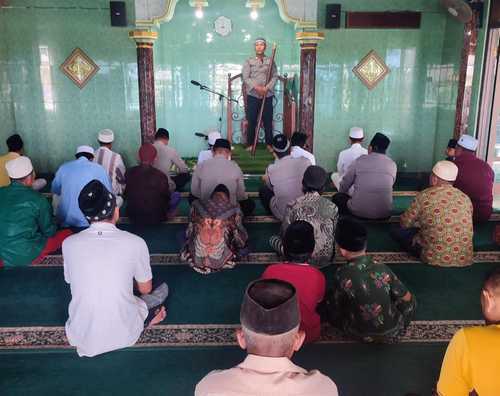 Kegiatan diawali dengan pelaksanaan ibadah sholat yang dipimpin oleh Aipda Sigit sebagai imam dan khatib. Dalam khutbahnya, ia menyampaikan pentingnya peran umat dalam menjaga ketertiban dan menjauhi perbuatan yang merugikan diri sendiri maupun masyarakat.