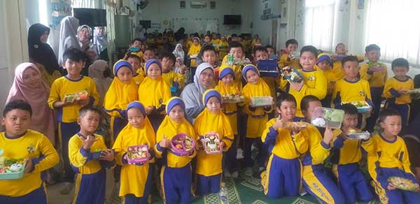 “Kami juga adakan olahraga setiap Hari Sabtu, setiap hari anak-anak juga diajak jalan minimal jalan dari gedung satu ke gedung dua. Siswa kelas I, dari gedung sana ke sini untuk salat, nah jalan ini salah satu bentuk olahraga. Anak-anak juga dibiasakan membawa botol minum dari rumah dan di sekolah ada refill air minum, bahkan di sekolah minimal sudah minum satu liter dan sisanya di rumah itu. Bekal pun Kami biasanya mengedukasi anak-anak untuk dilihat bekal yang dibawakan orang tuanya saat makan bersama. Kebetulan di sekolah bisa pesan makan siang tentu saja sudah sesuai dengan standar, sayurnya benar-benar tercukupi,” papar Ustadzah Norma.