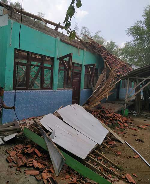 “Robohnya gedung banyak barang yg lapuk untung tidak ada korban jiwa soalnya siswa dan gurunya sudah mengetahui situasi bangunan bahaya, sehingga terpaksa muridnya di pindahkan ke tempat rumah warga setempat”ucapnya.