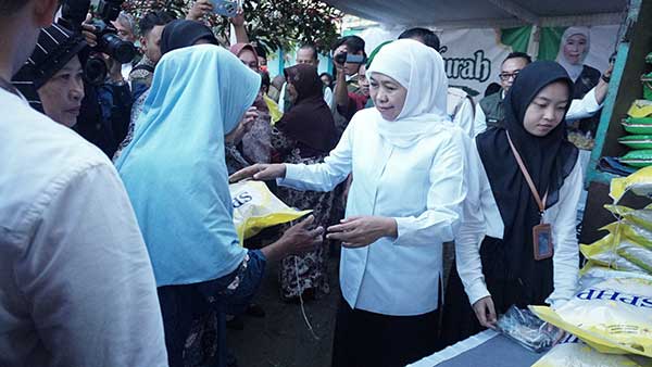 Gubernur Khofifah , menyebut pasar murah merupakan strategi intervensi Pemprov Jatim agar masyarakat dapat memperoleh bahan pokok dengan harga stabil.