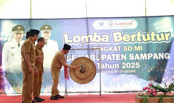 Sekretaris Daerah (Sekda) Kabupaten Sampang Yuliadi Setiyawan membuka lomba bertutur tingkat sekolah dasar (SD) / Madrasah Ibtidaiyah (MI) se-Kabupaten Sampang, Selasa (15/4).