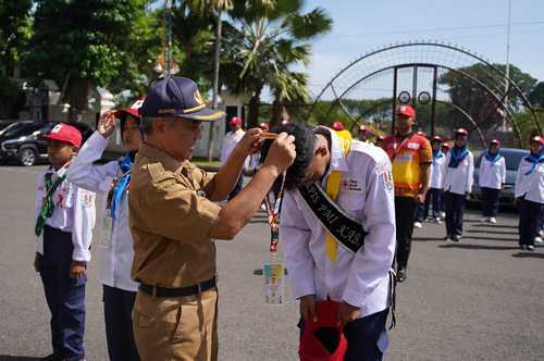 Sekretaris Daerah Kabupaten Tuban, Dr. Ir. Budi Wiyana, M.Si., secara resmi memberangkatkan kontingen Kabupaten Tuban pada ajang Jumpa, Bakti, dan Gembira (Jumbara) ke-10 Tingkat Provinsi Jawa Timur, Senin (15/9).