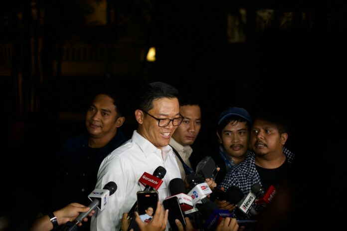 Sekjen DPP Partai Gerindra Sugiono di kediaman Prabowo di Jalan Kertanegara, Jakarta Selatan, Senin malam (08/09/2025).
