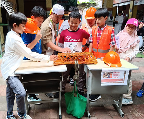 “Seperti yang telah kita lihat bersama ada Jembatan Sekolah Kreatif dan Jembatan Garuda Nusantara yang berasal dari Project Rancang Bangun, tadi sudah diuji oleh Ustadz Suyono yang ternyata jembatan rancangan para siswa ini memang kekuatannya sudah lumayan, dari beberapa kali percobaan sampai akhirnya teruji mampu menahan beban hingga 10 kilogram lebih, jembatan ini memang disusun anak-anak sendiri dari bahan-bahan yang sudah ditentukan bersama guru pendamping program tugas akhir ini,” jelas Ustadz Ustadz Agus.