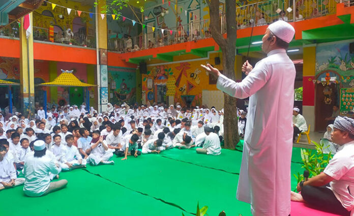 Turunnya Alquran yang diperingati sebagai setiap tanggal 17 Ramadan, Sekolah Kreatif SD Muhammadiyah 16 Baratajaya Surabaya memperingatinya dengan menggelar Hikmah Nuzulul Quran 1447 H pada Hari Jumat (6/3) lalu, bertempat di halaman sekolah hingga di depan ruang kelas, para siswa kelas I hingga kelas VI duduk rapi bergantian melantunkan ayat-ayat Suci Alquran secara kompak dan suasana syahdu.