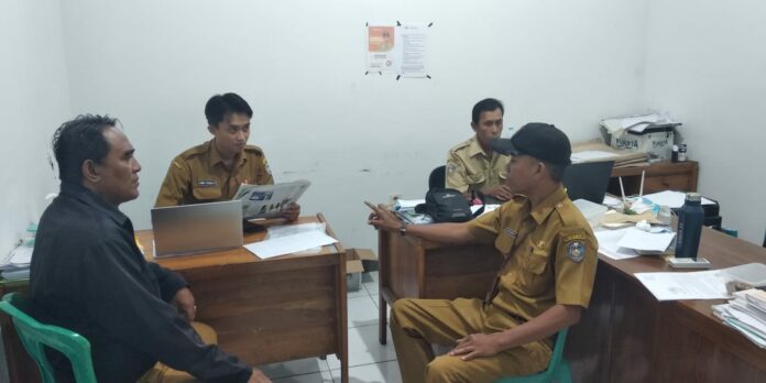 Staf Seksi Trantib Kecamatan Mangaran, Kabupaten Situbondo sedang berkoordinasi untuk mendukung program Camat baru, Rabu (26/11). sawawi/bhirawa