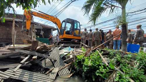 ”Lahan tersebut merupakan aset pemerintah daerah dan tidak diperuntukkan bagi bangunan lapak. Karena itu harus dikembalikan sesuai fungsinya. Hari ini dilakukan pembongkaran tahap awal,” ujarnya.