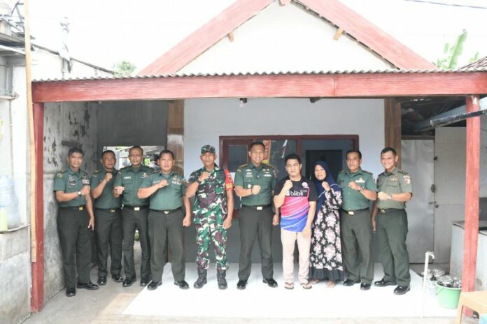 Tampak Dandim bersama perwira staf kunjungi progres RTLH di wilayah Koramil 0815/15 Jatirejo, Kabupaten Mojokerto, Kamis (28/08/2025).