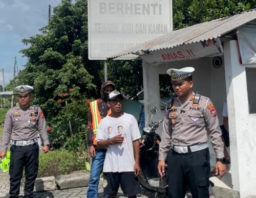 Kasat Lantas Polres Bojonegoro, AKP Deni Eko Prasetyo, saat melakukan cek perlintasan sebidang diwilayah Bojonegoro.