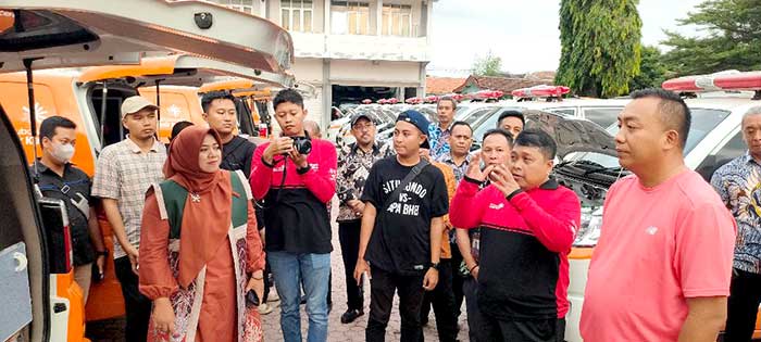 Bupati Mas Rio bersama Wabup Mbak Ulfi serta Kadis Kesehatan dr Sandy Hendrayono menyerahkan bantuan ambulan senilai Rp 13,3 miliar kepada 38 Desa, di halaman belakang Pemkab Situbondo, Kamis (27/11).