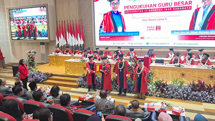 Universitas 17 Agustus 1945 (Untag) Surabaya mengukuhkan dua guru besar baru sebagai bagian dari penguatan kapasitas akademik sekaligus langkah strategis dalam menyiapkan ekspansi program pendidikan, khususnya pembukaan program magister baru, pengukuhan tersebut berlangsung di Gedung Graha Wiyata Lantai 9, Surabaya.