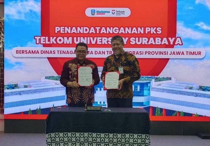 Pemerintah Provinsi Jawa Timur melalui Dinas Tenaga Kerja dan Transmigrasi (Disnakertrans) bersama Telkom University Surabaya resmi membuka kegiatan Career Day Tahun 2025, Rabu (28/8), bertempat di Aula Telkom University Surabaya.