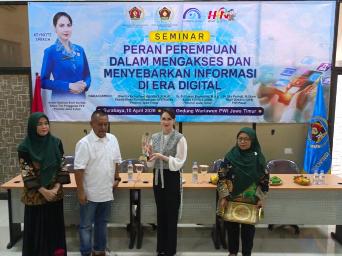 Melalui sinergi PKK, IKWI, dan PWI, diharapkan Jawa Timur mampu membangun ekosistem digital yang tidak hanya canggih secara teknologi, tetapi juga sehat secara informasi dan kuat secara ketahanan keluarga. Kegiatan menghadirkan narasumber lainnyan seperti Sri Untari Bisowarno Ketua Komisi E DPRD Jatim, Dr Eko Pamuji, Wakil Direktur Uji Kompetensi Wartawan (UKW) PWI Pusat dan Putut Darmawan Kabid Informasi dan Komunikasi Publik mewakili Kepala Diskominfo Jatim yang berhalangan hadir. [rac.kt]