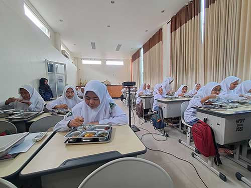Sutrisno menjelaskan, MBG diberikan sesuai jumlah absensi pelajar yang hadir ke sekolah di hari tersebut, yaitu 2.477 siswa. Setiap harinya, para pelajar yang hadir akan menerima menu makanan sesuai daftar gizi yang disusun Tim Satuan Pelayanan Pemenuhan Gizi (SPPG).