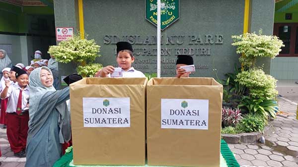 Selain aksi tanggap bencana, SD NU Pare juga membiasakan siswa untuk berinfak setiap Jumat sebagai bagian dari pendidikan karakter peduli sesama.