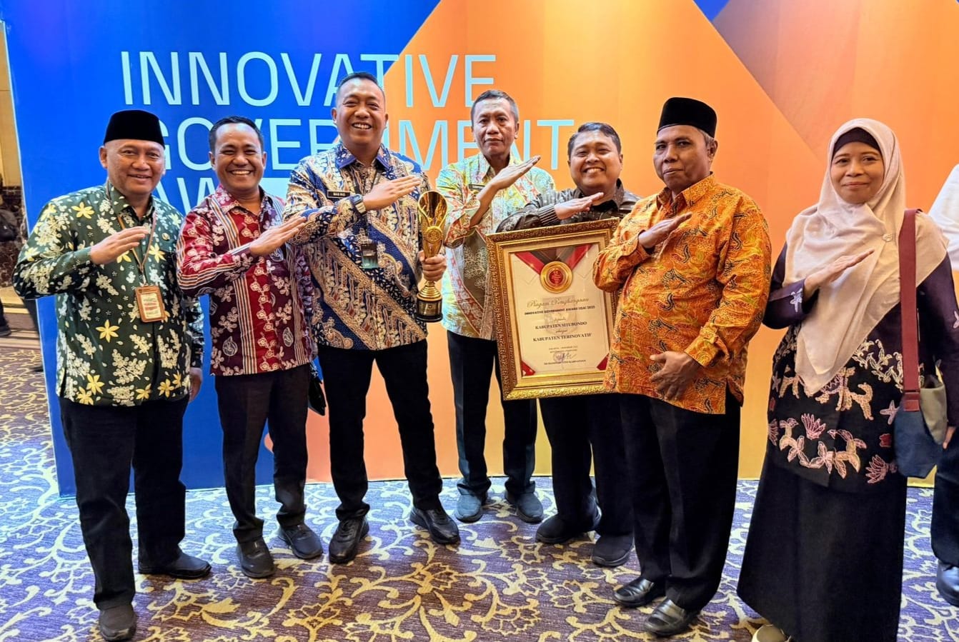 Bupati Mas Rio didampingi sejumlah pimpinan OPD saat menerima penghargaan IGA Award dari Kemendagri, Rabu (10/12).