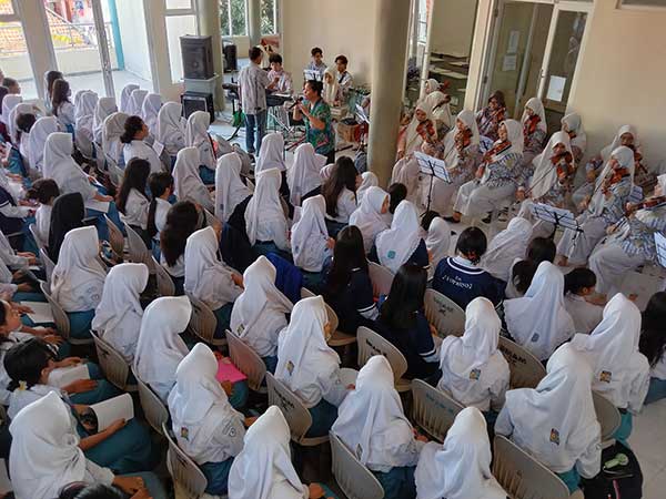 “Jumlah keseluruhan tim musik penampil dalam Hardiknas di Grahadi nanti 175 orang. Dimana 25 orang pemain musiknya dari murid kami, sementara 150 orang siswa anggota Paduan Suara berasal dari 4 sekolah negeri yang ada di Surabaya”, jelas salah satu guru pembina Orkestra SMAMX, Alief Lestari.