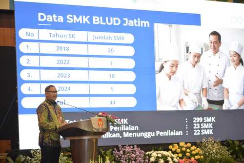 SMK berstatus Badan Layanan Umum Daerah (BLUD) jadi salah satu strategi Pemerintah Provinsi Jawa Timur dalam memperkuat pendidikan vokasi sebagai bagian dari transformasi layanan publik. Tak hanya itu melalui SMK BLUD Pemprov Jatim akan memperkuat dan meningkatkan relevansi lulusan dengan kebutuhan dunia kerja dan industri. Saat ini total 44 SMK Negeri di Jawa Timur berstatus BLUD.