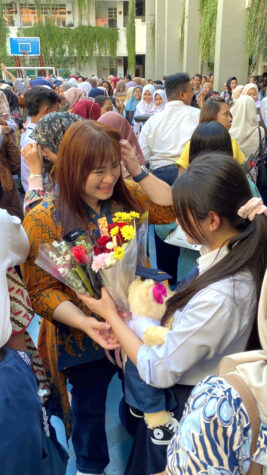 Acara kelulusan diakhiri dengan pelepasan secara simbolis topi siswa Spensabaya yang menandakan mereka resmi lulus dan menjadi alumni. Siswa siswi kemudian secara serentak memberikan bunga kepada orang tua/ wali murid yang hadir di lapangan sekolah. [dre]