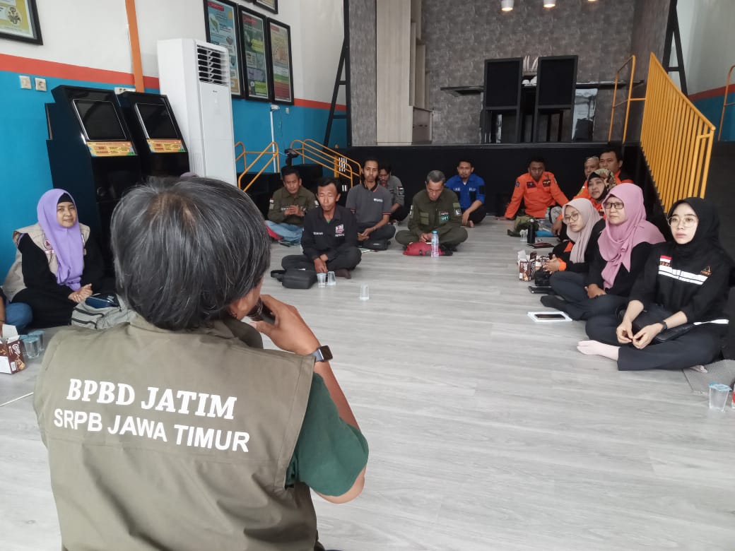 Anggota organisasi mitra SRPB Jawa Timur mengikuti pelatihan khusus evakuasi gedung di Ruang Simulator Gempa BPBD, Minggu, (26/01/2025).