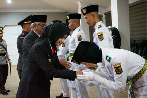 “Pengukuhan ini merupakan momen yang sangat bermakna bagi kita semua. Di momen ini adik-adik sekalian diberikan kesempatan nantinya untuk mengibarkan Bendera Merah Putih dalam Upacara Peringatan HUT ke-80 Kemerdekaan RI. Selain itu momen ini adik-adik juga dipilih sebagai putra-putri terbaik daerah,” ujarnya.