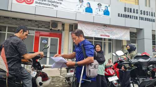 Sebanyak 20 orang penyandang disabilitas mendatangi Kantor Dinas Sosial (Dinsos) Kabupaten Tulungagung, Senin (2/3).Mereka mengeluh karena tidak lagi mendapat bantuan sosial (bansos) seperti Program Keluarga Harapan (PKH) dan Bantuan Pangan Non Tunai (BPNT).