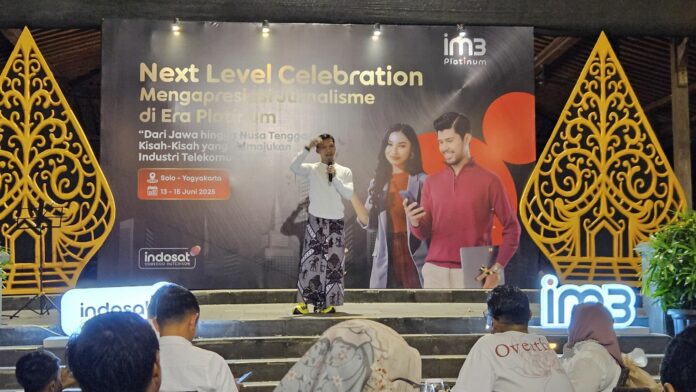 SVP-Head of Region East Java Indosat Ooredoo Hutchison, Sigit Herprabowo saat menyampaikan ulasan lengkap kinerja region yang dipimpinnya di hadapan awak media pada acara Awarding Night Kompetisi Jurnalistik IM3 Platinum bertajuk “Dari Jawa hingga Nusa Tenggara: Kisah-kisah yang Memajukan Industri Telekomunikasi” di Yogyakarta (14/6).