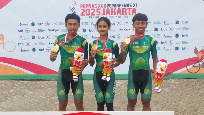 Atlet balap sepeda Jawa Timur terus memacu pedalnya untuk bisa meraih prestasi di Pekan Olahraga Pelajar Nasional (Popnas) XVII Jakarta 2025. Pada lomba yang digelar di Arena Jakarta International Equestrian, Kamis (6/11) mereka kembali merebut dua medali emas, satu perunggu dan sekaligus membuka peluang untuk meraih juara umum di cabang olahraga sepeda.