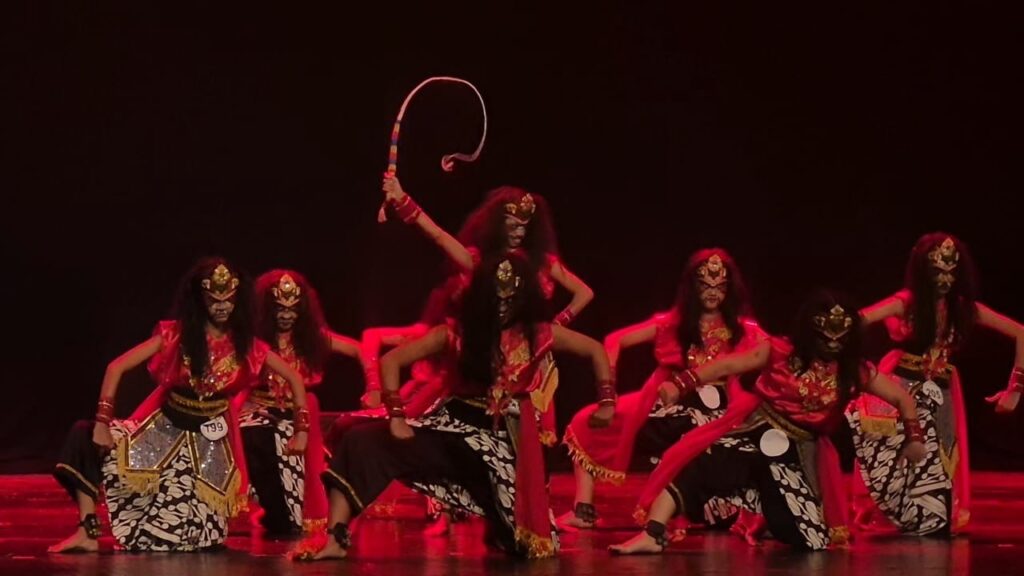 Penampilan kelompok tari Cemeti Yakso pada pagelaran uji kompetensi “Simfoni Raga di Titik Balik” kolaborasi dengan Program Studi Pendidikan Sendratasik UNESA.