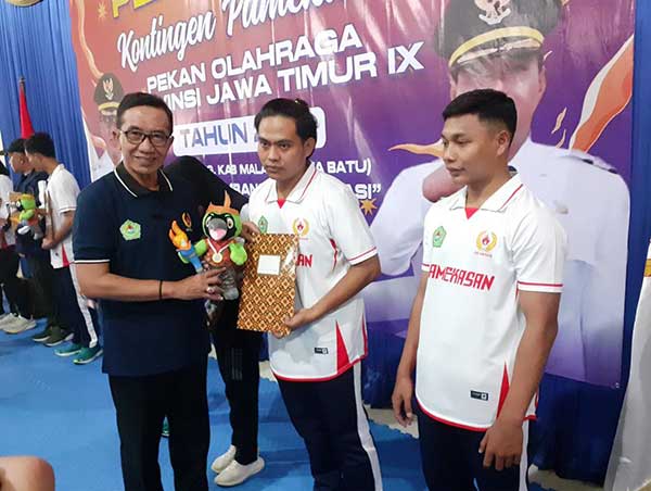 Bupati Pamekasan, Madura, Jawa Timur, KH Kholilurrahman secara resmi melepas kontingan kabupaten Pamekasan untuk berlaga dalam Pekan Olahraga Provinsi (Porprov) Jawa Timur ke-IX Tahun 2025, di gedung PKPN RI, di Jalan Kemuning, Kamis (12/6).