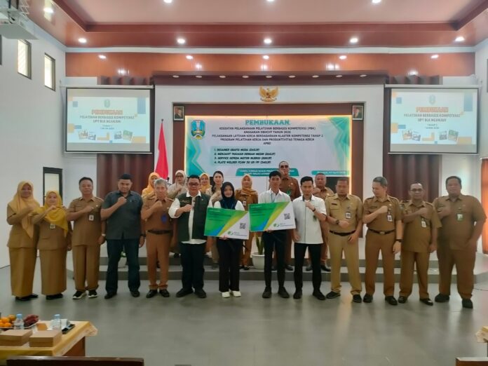 Dinas Tenaga Kerja dan Transmigrasi (Disnakertrans) Provinsi Jawa Timur resmi membuka Pelatihan Berbasis Kompetensi (PBK) Tahap 2 Tahun Anggaran 2026 di UPT Balai Latihan Kerja (BLK) Nganjuk, Senin (6/4/2026).
