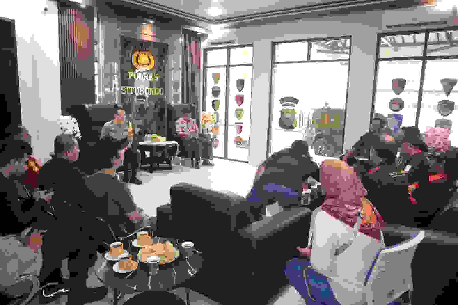 Kapolres Situbondo, AKBP Bayu Anuwar Sidiqie menerima audiensi dari sejumlah perwakilan Lembaga Swadaya Masyarakat (LSM) dan Lembaga Bantuan Hukum (LBH) di ruang lobi Mapolres Situbondo, Jumat (6/2).