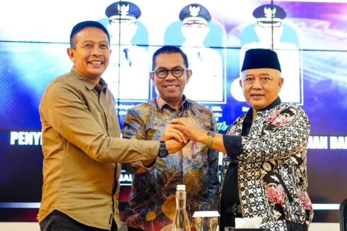 Bupati Malang HM Sanusi (kanan) bersama Wali Kota Batu H Nurochman (tengah) dan Wali Kota Malang H Wahyu Hidayat (kiri) sepakat bangun Harmonisasi Transportasi Malang Raya