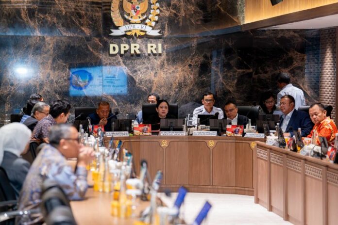 Ketua DPR RI Puan Maharani memimpin pertemuan antara pimpinan DPR dengan pimpinan fraksi partai politik di Ruang Rapat Kompleks Parlemen, Senayan, Jakarta, Kamis (4/9/2025).