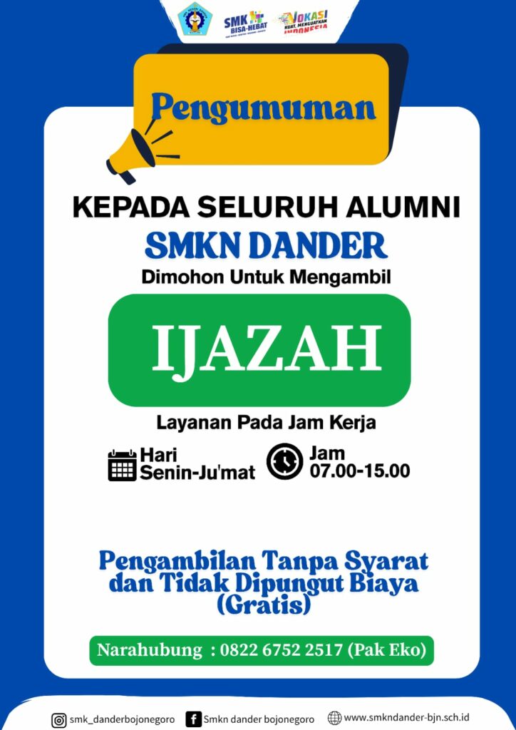 Pembuatan Flayer pengumuman pengambilan ijazah ini, bertujuan sebagai informasi bagi para siswa yang akan melakukan pengambilan ijazah di sekolahnya masing-masing