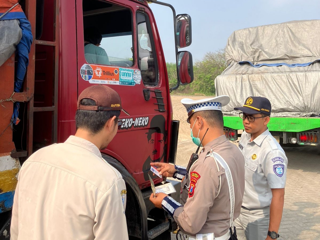 Satlantas Polres Gresik bersama dengan beberapa instansi terkait, mengadakan operasi gabungan untuk menertibkan jam operasional kendaraan angkutan barang dan truk galian C. Kegiatan berlangsung di Desa Ngawen, Kecamatan Sidayu.