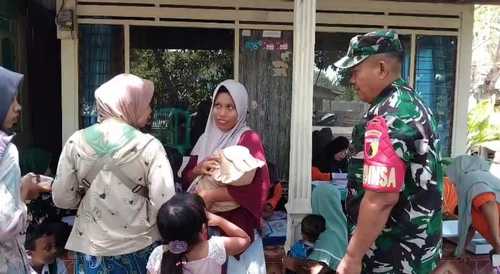 Selain membantu kelancaran kegiatan, Sertu Agus juga berkoordinasi dengan perangkat desa serta tenaga kesehatan untuk memastikan pelayanan posyandu berjalan tertib dan aman.