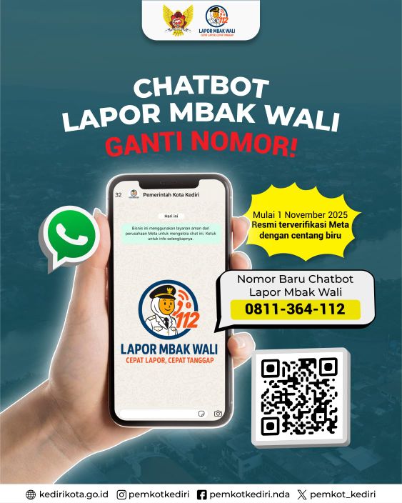 Untuk memudahkan akses dan meningkatkan partisipasi masyarakat dalam penyampaian laporan maupun aduan, Pemerintah Kota Kediri secara resmi mengganti nomor WhatsApp Chatbot Lapor Mbak Wali mulai Sabtu (1/11).