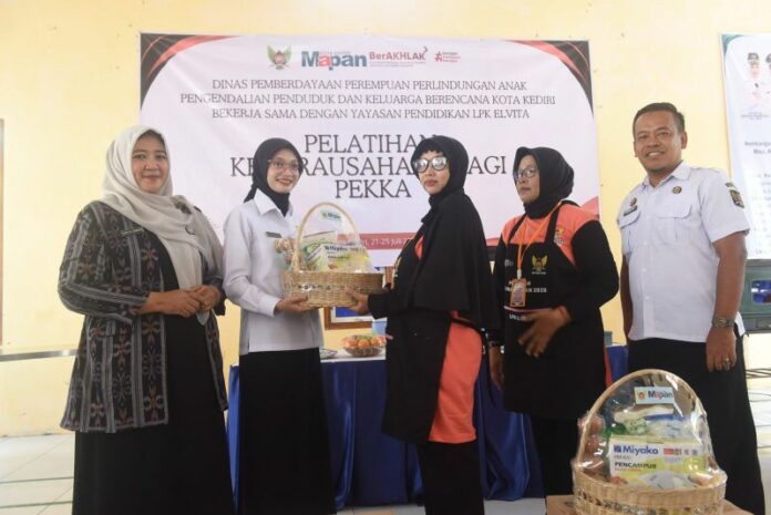 Wali Kota Kediri Vinanda Prameswati bersama Ketua TP PKK Kota Kediri Faiqoh Azizah Muhammad meninjau langsung kegiatan Pelatihan Kewirausahaan yang digelar di Balai RW Kelurahan Banjarmlati, Rabu (23/7/2025). Pelatihan ini diikuti oleh 46 orang yang merupakan para perempuan kepala keluarga (PEKKA) di tiap kelurahan di Kota Kediri.